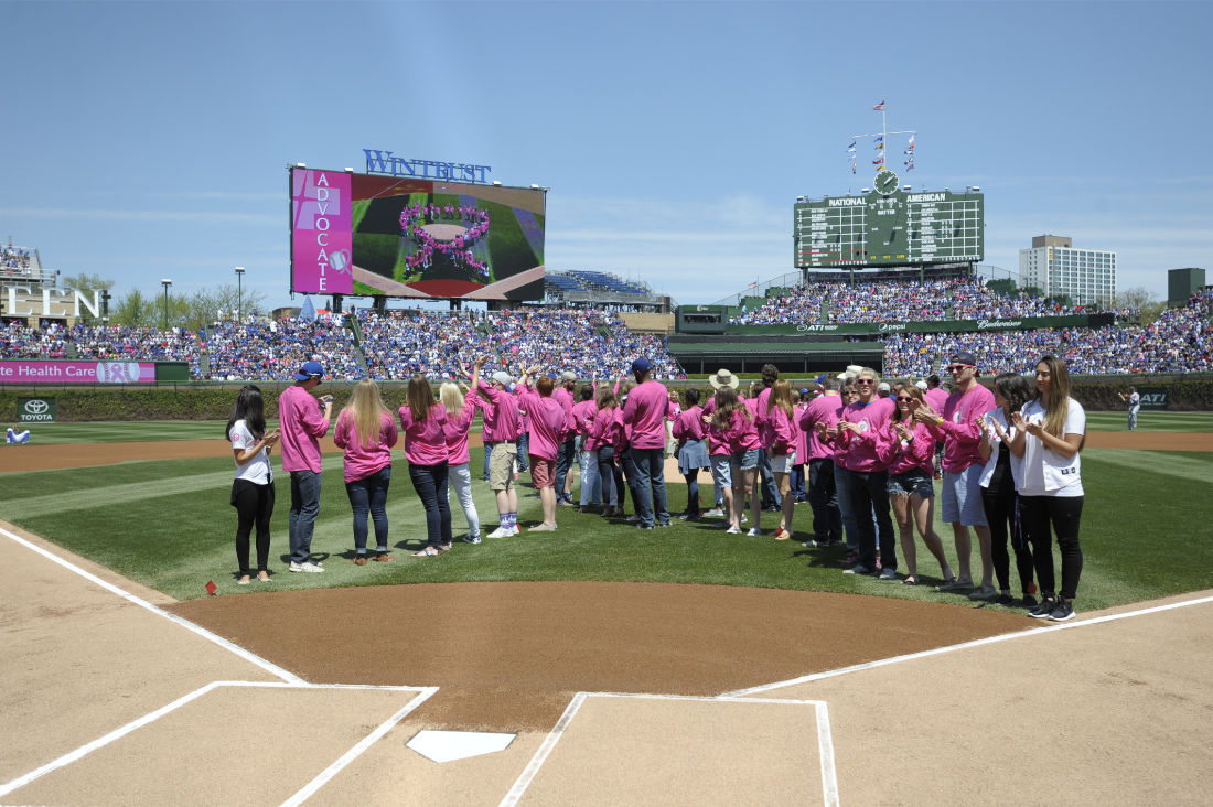 Thank you to the 75 breast cancer survivors and their families and doctors who came out to the #PinkOut game at Wrigley Field on Sunday, May 8th! Advocate Health Care and the Chicago Cubs teamed up to honor breast cancer survivors and raise awareness for the disease that one in eight women develop in their lifetime. All of the survivors and families had the experience of a lifetime, participating in on-field events and activities with the Cubs!